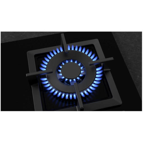 Газовая варочная поверхность из закалённого стекла с технологией пошагового регулирования Flame Select. Технология FlameSelect осуществляет точную регулировку пламени конфорки. Теперь не нужно заглядывать под сковороду, 9 фиксированных уровней пламени позволяют регулировать мощность работы газовой конфорки, как в электрической варочной поверхности.