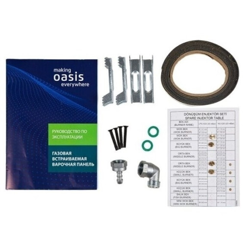 Встраиваемая варочная панель – обязательный для современной кухни прибор, без которого невозможно представить комфортный быт. Это эргономичное, компактное и актуальное решение для современной кухни, которое позволит организовать полезное пространство максимально эффективно. Преимущество газовых варочных панелей состоит в существенной экономии и простоте эксплуатации, кроме того газовые горелки очень быстро нагреваются, создавая равномерный прогрев продуктов. Все газовые варочные панели «making Oasis everywhere» оснащены системой автоподжига и «Газ-контроля» для безопасного и комфортного использования в течение всего срока эксплуатации прибора. Линейка газовых варочных панелей представлена стеклянными и металлическими моделями, которые подойдут под дизайн любой кухни. ____________________________________________________________________________________________________________________________________________________ Модель P-GWT (F) Параметры электросети, В/Гц 220/50 Материал поверхности Закаленное стекло Цвет Белый Газовый класс II2H3B/P Мощность горелок, Вт 1000/1600/3800 Габаритные размеры, мм 610х510х97 Вес нетто, кг 14,33 Европейское качество Wok-конфорка Sabaf (Италия) Система