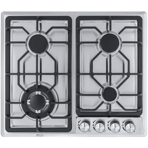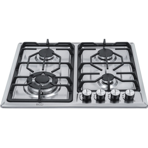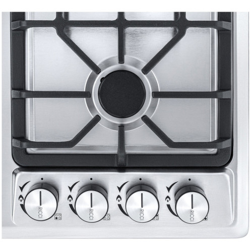 Встраиваемая газовая варочная панель Ricci HBS4513D – подходящее решение для кухни в классическом стиле. У четырех конфорок – различный диаметр и мощность, найдётся место и для миниатюрных турки или ковшика, и для больших кастрюль и сковород.Электроподижг встроен в рукоятки переключателей. Функция газ - контроль обезопасит вас, если пламя случайно погасло.