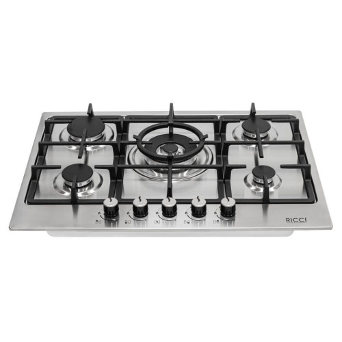 Газовая варочная поверхность Ricci RGN-EL5008IX с пятью газовыми конфорками. Поджиг производится автоматически при повороте переключателя. Максимальную безопасность при работе обеспечивают устойчивые чугунные решетки.