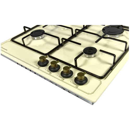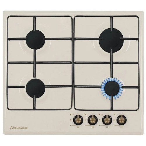 Газовая варочная поверхность SchaubLorenz GB6010 – это современная кухонная техника, выполненнаяв стиле Retro. Бежевый цвет панели и бронзовые элементы управления выгодно выделяют модель из всей линейки варочных поверхностей компании SchaubLorenz. Газовая варочная поверхность SchaubLorenz GB6010 оснащена четырьмя газовыми конфорками разного размера и мощности: одна экономичная малого диаметра, которая подходит для разогрева пищи, две стандартные – оптимальное решение для приготовления еды, и одна конфорка HighSpeed, обладающая повышенной мощностью и обеспечивающая быстрый нагрев. В газовой варочной поверхности SchaubLorenz GB6010 используются составные эмалированные решетки, которые легче, чем чугунные, но не уступают им ни в прочности, ни в устойчивости посуды.