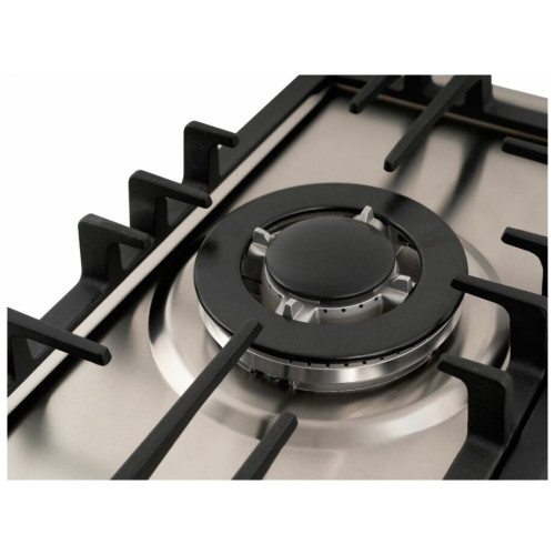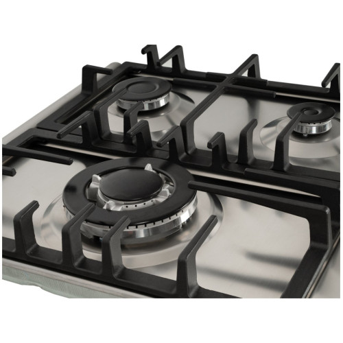 Газовая варочная поверхность металл, Ширина 45 см, 3 газовые конфорки, 1 экономичная конфорка (0,9 кВт), 1 стандартная конфорка (1,7 кВт), 1 ВОК конфорка(3,5 кВт), Автоподжиг, Чугунные решетки, Жиклёры для баллонного газа, Газ-контроль, Цвет: нержавеющая сталь
