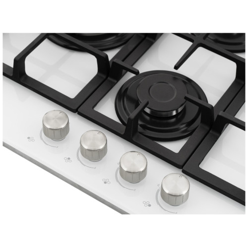 • Стильная белая стеклянная поверхность • WOK конфорка • Автоматический электроподжиг • Надежный газ-контроль • Прочные чугунные решетки • Жиклеры для баллонного газа Белая стеклянная варочная поверхность ромбовидной формы будет стильно смотреться в любом интерьере. WOK конфорка значительно сокращает время приготовления благодаря повышенной мощности и более качественной тепловой обработке. Прочные чугунные решетки не скользят и плотно прилегают к поверхности. Стильные ручки управления серебристого цвета не нагреваются во время работы варочной поверхности. Система газ-контроля надежно защищает от утечки газа, если конфорка непредвиденно потухнет. Автоматический электроподжиг мгновенно зажигает пламя конфорки. В комплекте с варочной поверхностью предусмотрены жиклеры для баллонного газа.