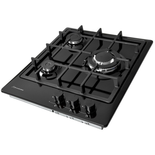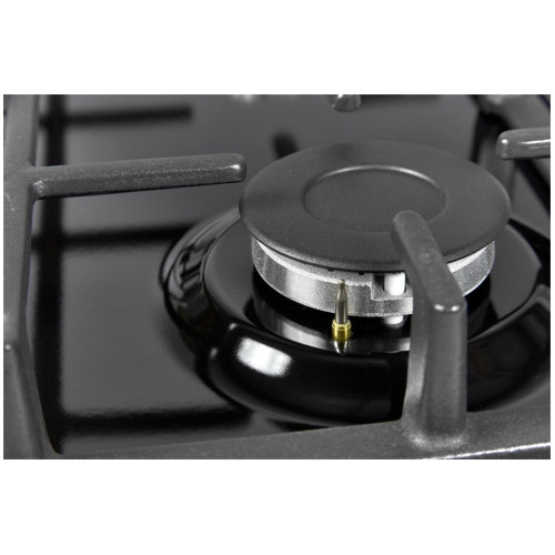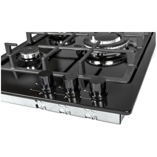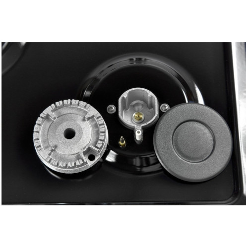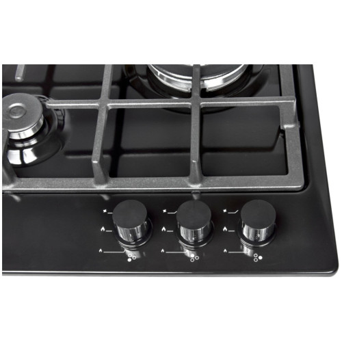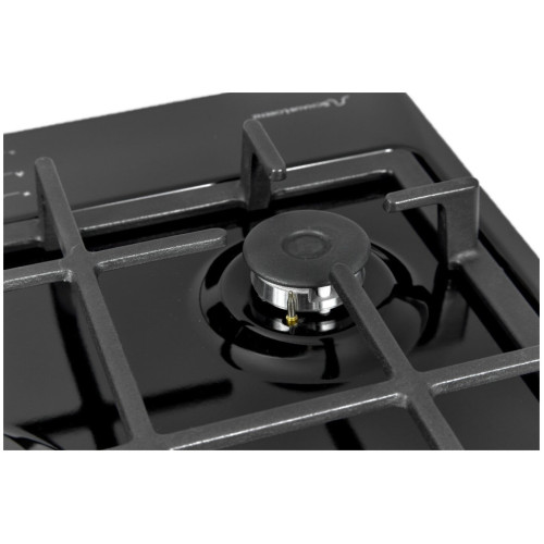 Газовая варочная поверхность, Эмаль, Ширина 45 см , 3 газовые конфорки, WOK конфорка 3600 Вт , 1 стандартная конфорка 1750 Вт , 1 экономичная конфорка 1000 Вт , Автоподжиг, Газ-контроль, Чугунная решетка, Жиклёры для баллонного газа, Цвет: черный
