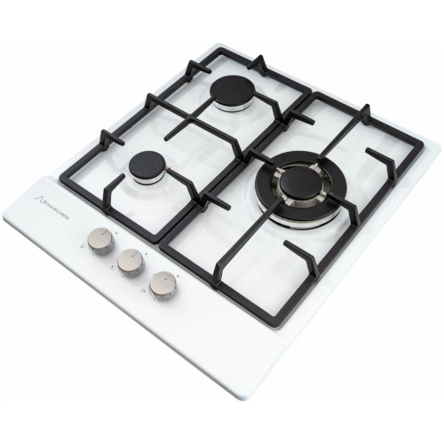 материал панели: нержавеющая сталь/эмаль общее количество конфорок: 3 установка: независимая электроподжиг: есть газ-контроль: есть чугунные решетки: есть переключатели: поворотные ШхГ: 45.50х51 см