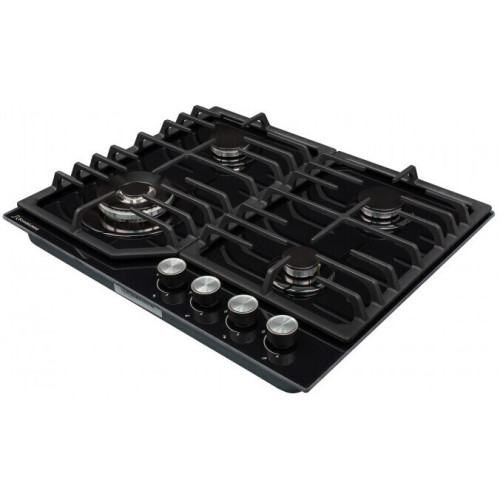 Черная стеклянная варочная поверхность будет стильно смотреться в любом интерьере. WOK конфорка значительно сокращает время приготовления благодаря повышенной мощности и более качественной тепловой обработке. Прочные чугунные решетки не скользят и плотно прилегают к поверхности. Стильные ручки управления серебристого цвета не нагреваются во время работы варочной поверхности. Система газ-контроля надежно защищает от утечки газа, если конфорка непредвиденно потухнет. Автоматический электроподжиг мгновенно зажигает пламя конфорки. В комплекте с варочной поверхностью предусмотрены жиклеры для баллонного газа.