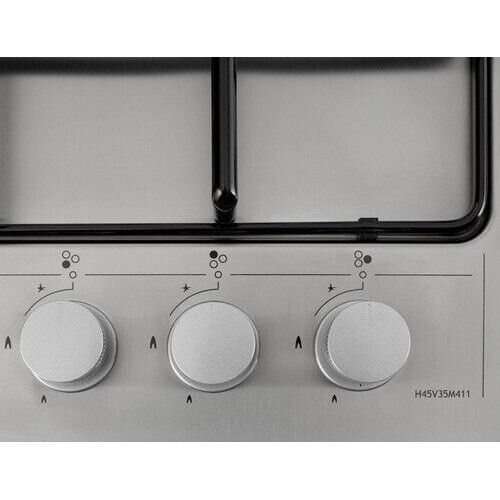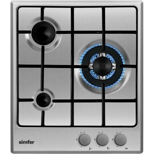 * Газовая варочная поверхность Simfer H45V35M411 выполнена из нержавеющей стали. Поворотные переключатели делают управление быстрым и простым. Модель имеет 3 конфорки, одна из которых