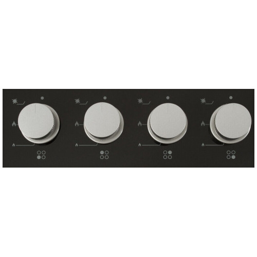Габариты: 10,7х59х52 см Габариты ниши для встраивания: -х56х49 см Рабочая поверхность: закаленное стекло Количество конфорок: 4 Мощность конфорок: 1 х конфорка с двойной короной: 2.5 кВт 2 х средние конфорки: 1.75 кВт 1 х маленькая конфорка: 1 кВт Автоматический розжиг Газ контроль Дополнительная информация: Фронтальная панель управления Составные чугунные решётки Жиклёры для баллонного газа