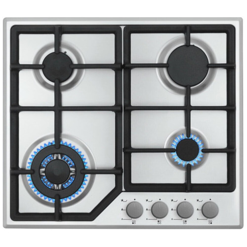 Габариты: 10,5х58х51 см Габариты ниши для встраивания: -х56х49 см Рабочая поверхность: нержавеющая сталь Количество конфорок: 4 Мощность конфорок: 1 х конфорка с тройной короной: 3.6 кВт 1 х большая конфорка: 3 кВт 1 х средняя конфорка: 1.75 кВт 1 х маленькая конфорка: 1 кВт Автоматический розжиг Дополнительная информация: Фронтальная панель управления Составные чугунные решётки Жиклёры для баллонного газа