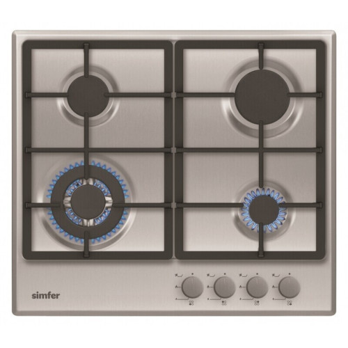 Simfer H60V41M513 – газовая варочная панель с независимым типом установки, которую отличают простота использования и высокая надежность. Представленная модель оснащена 4 конфорками разной мощности, включая одну экспресс-конфорку (1 х 1000 Вт, 2 х 1750 Вт, 1 х 3000 Вт). Для удобства использования предусмотрен автоматический электроподжиг – приобретать дополнительные средства розжига не потребуется.