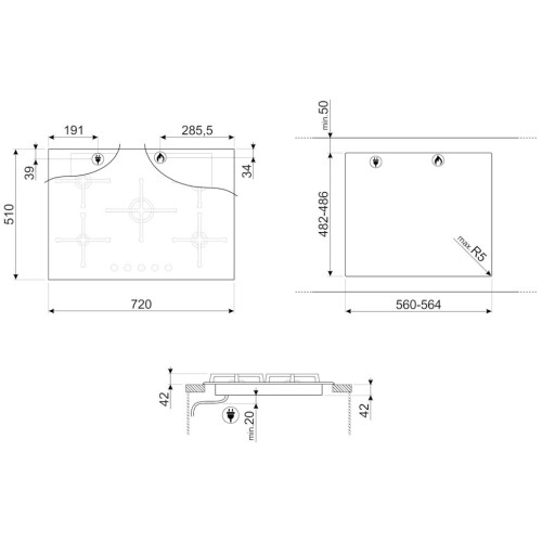 Варочная панель «газ на стекле» отличается особой прочностью – белое закаленное стекло закреплено на металлической основе. Это значительно продлевает срок службы прибора и усиливает его устойчивость к механическому воздействию. На стеклянной поверхности размещены 5 ультранизких газовых горелок. В отличие от обычных, они не рассеивают пламя, а направляют его вертикально вверх, поэтому вся тепловая энергия уходит на нагрев посуды. Усовершенствование конструкции конфорок позволило сократить затраты газа. Горелка, размещенная по центру, имеет увеличенный диаметр и высокую мощность нагрева – 3,2 кВт. Согласно рекомендациям производителя, ее необходимо использовать для приготовления в посуде большого диаметра. Решетки из чугуна, которые изготовлены индивидуально для каждой конфорки, соответствуют дизайну серии Linea, к которой принадлежит данная модель. Они компактные, но в то же время прочные и устойчивые. Сама варочная панель выполнена в стиле минимализм. Поворотные ручки являются не только элементами управления, но и украшением – их дизайн был разработан специально для этой коллекции. Для зажигания конфорки достаточно повернуть регулятор – в варочной панели предусмотрен автоматический электроподжиг. Горелки оснащены системой безопасности газ-контроль. Если пламя гаснет, подача газа сразу перекрывается. Эстетика и управление: Чугунные решетки Поворотные переключатели Крышки горелок эмалированные Функциональность: Автоматический электроподжиг 5 ультранизких газовых горелок с вертикальным пламенем: Задняя левая 1,7 кВт Передняя левая 1,1 кВт Центральная 3,2 кВт Задняя правая 2,6 кВт Передняя правая 1,7 кВт Безопасность: Газ-контроль