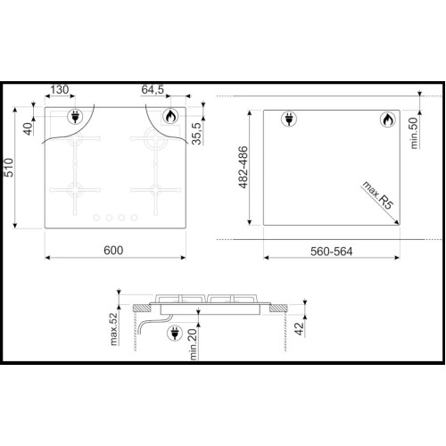 Варочная панель газовая Smeg PV864PO выполнена из прочного и долговечного закаленного стекла кремового цвета, благородство которого подчеркивают стильные поворотные переключатели с имитацией латуни. Устойчивость к высоким температурам и износостойкость — достоинства этого вида материала. Решетки из чугуна не деформируются, легко снимаются и очищаются, а также способны без труда выдерживать даже весьма значительный вес. Поверхность встраивается в столешницу накладным способом и подключается к электроэнергии для более безопасного функционирования. Особенности Каждая из 4 горелок оснащена собственным переключателем, при помощи которого можно не только выбрать необходимую интенсивность пламени, но и разжечь его, не прибегая к помощи дополнительных средств. Встроенный электроподжиг значительно облегчает начало работы и делает его более простым. Разная мощность конфорок позволяет оптимизировать процесс приготовления в зависимости от нужных параметров. А благодаря наличию в комплекте сменных жиклеров для переоборудования можно использовать в качестве источника нагрева как природный газ, доступный при подключении к центральному газоснабжению, так и сжиженный в баллонах. Система газ-контроля предотвращает возникновение утечек, делая прибор более безопасным даже для использования пожилыми людьми. Специальный датчик в каждой из горелок отслеживает уровень тепла в ней, и если он падает до определенного параметра, подача газа автоматически перекрывается. Это позволяет максимально быстро отреагировать на погасшее по какой-то причине пламя и не допустить опасной ситуации. Характеристики 60см, материал-закаленное стекло Управление-поворотные переключатели Горелки: Задняя левая – 1,7 кВт Передняя левая – 1,7 кВт Задняя правая – 2,9 кВт Передняя правая – 1,0 кВт Тип газа- G20 природный газ Крышки горелок эмалированные Автоматический электроподжиг Газ-контроль Мощность подключения: 1 Вт Номинальная мощность горелок: 7,3 кВт