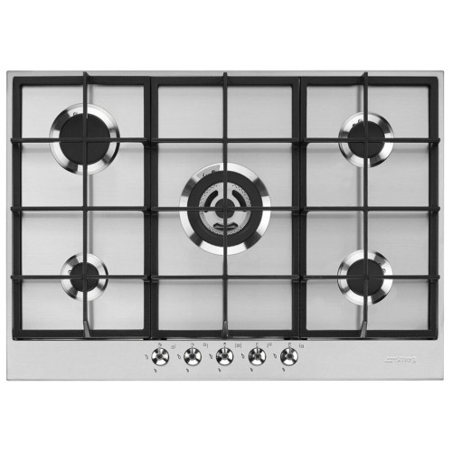 Варочная панель Smeg PX375 серии Classica предназначена для приготовления или разогрева различных блюд в наплитной посуде в квартирах и частных домах. Возможность встраивания значительно сэкономит кухонное пространство, а классический дизайн станет украшением интерьера. Комплектация: Жиклеры для других типов газа: G30 GPL сжиженный газ Эстетика и управление: Поворотные переключатели эффект нержавеющей стали Нержавеющая сталь матовая Решетки чугунные Функции: 5 газовых горелок Дополнительные характеристики: Мощность конфорки: Задняя левая: 2,6 кВт Передняя левая: 1,1 кВт Центральная: 4 кВт Задняя правая: 1,8 кВт Передняя правая: 1,8 кВт Тип газа: природный G20 Электрическая мощность: 0,001 кВт