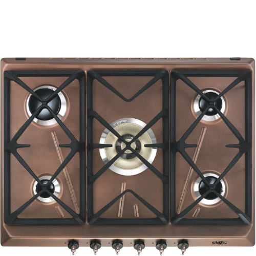 Smeg — независимая модель с пятью газовыми горелками, активация которых осуществляется по технологии автоматического электроподжига. Ультрабыстрая конфорка с двойным управлением оптимально подходит для ускоренного кипячения жидкости или приготовления блюд в крупногабаритной посуде. Система защиты от утечек исключает риск возникновения взрывоопасных ситуаций. * Чугунные решетки * Газ-контроль * Автоматический электроподжиг