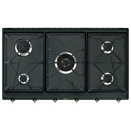 эстетика и управление Антрацит Поворотные переключатели латунные Чугунные решетки Крышки горелок эмалированные функциональность Автоматический электроподжиг 5 газовых горелок, 1 ультрабыстрая с двойным управлением Передняя левая – 1,05 кВт Задняя левая – 3,1 кВт Центральная – 3,9 + 1.1 кВт Передняя правая – 1,65 кВт Задняя правая – 1,65 кВт безопасность Газ-контроль Жиклеры для других типов газа в комплекте: G30 GPL сжиженный газ технические характеристики Тип газа: G20 природный газ Номинальная мощность: 1 Вт Номинальная мощность газа: 12,4 кВт Напряжение: 220-240 В Частота тока: 50/60 Гц