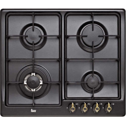 Описание Особенности: * Газовая варочная панель * Цвет: чёрный/состаренная бронза * Чугунные решётки * Автоподжиг и газ-контроль на каждой горелке * 4 зоны приготовления: 1 горелка с тройным пламенем (3,5 кВт) 1 основная горелка (3,0 кВт) 1 средняя горелка (1,75 кВт) 1 дополнительная горелка (1,0 кВт) * Номинальная тепловая мощность 9,25 кВт * Тип газа: LPG (бутан, пропан)/природный * Размеры: 580 х 500 мм