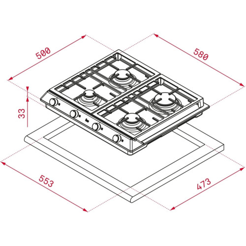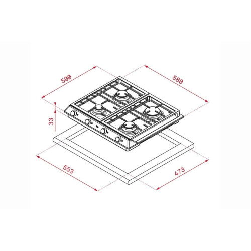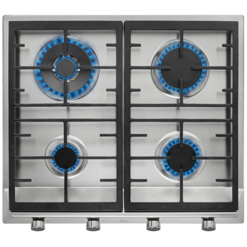 Цвет: нержавеющая сталь. Ширина (см): 58. Глубина (см): 50. Переключатели: поворотные. Всего конфорок: 4. Материал панели: Нержавеющая сталь. Расположение переключателей: спереди. Таймер конфорок: нет. Индикатор остаточного тепла: нет. Чугунные решетки: есть. Электроподжиг: есть. Газ-контроль конфорок: есть. Защитное отключение: нет