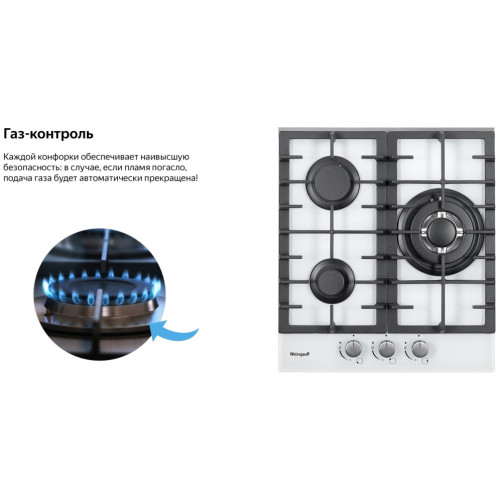Встраиваемая независимая газовая панель Weissgauff шириной 45 см, исполненная в закалённом белом стекле - это стильное и компактное решение для вашей кухни! Ширина 45 см позволит установить газовую панель Weissgauff даже в самую небольшую кухню! Белое закаленное стекло не только роскошно выглядит, подчеркивая великолепный внешний вид данной модели, но и отлично справляется с механическими воздействиями и температурными перегрузками! Решетки из высококачественного чугуна это неизменное качество, надежность и долговечность, воплощенные в каждой детали! Благодаря особому строению цельных решеток Weissgauff, размещение посуды на них становится ещё более удобным и устойчивым! WOK-конфорка мощностью 3,4 кВт, которая создаёт сразу три кольца пламени и позволяет осуществить нагрев даже самой крупногабаритной посуды в кратчайший срок! Газ-контроль каждой конфорки обеспечивает наивысшую безопасность: в случае, если пламя погасло, подача газа будет автоматически прекращена! Рукоятки Hi-Tech дополняют современный, по-немецки выверенный облик модели. Более того, конструктивные особенности строения и расположения этих рукояток защищают их от перегрева и деформации при длительном термическом воздействии в процессе приготовления еды! Автоматический электроподжиг, независимо встроенный в каждую из рукояток, позволит зажечь любую конфорку за долю секунды, всего одним нажатием и поворотом руки, не прибегая к дополнительным приспособлениям!