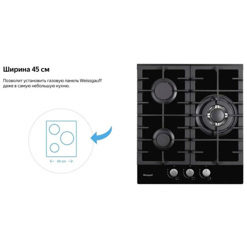 Встраиваемая независимая газовая панель Weissgauff шириной 45 см, исполненная в закалённом белом стекле - это стильное и компактное решение для вашей кухни! Ширина 45 см позволит установить газовую панель Weissgauff даже в самую небольшую кухню! Белое закаленное стекло не только роскошно выглядит, подчеркивая великолепный внешний вид данной модели, но и отлично справляется с механическими воздействиями и температурными перегрузками! Решетки из высококачественного чугуна это неизменное качество, надежность и долговечность, воплощенные в каждой детали! Благодаря особому строению цельных решеток Weissgauff, размещение посуды на них становится ещё более удобным и устойчивым! WOK-конфорка мощностью 3,4 кВт, которая создаёт сразу три кольца пламени и позволяет осуществить нагрев даже самой крупногабаритной посуды в кратчайший срок! Газ-контроль каждой конфорки обеспечивает наивысшую безопасность: в случае, если пламя погасло, подача газа будет автоматически прекращена! Рукоятки Hi-Tech дополняют современный, по-немецки выверенный облик модели. Более того, конструктивные особенности строения и расположения этих рукояток защищают их от перегрева и деформации при длительном термическом воздействии в процессе приготовления еды! Автоматический электроподжиг, независимо встроенный в каждую из рукояток, позволит зажечь любую конфорку за долю секунды, всего одним нажатием и поворотом руки, не прибегая к дополнительным приспособлениям!