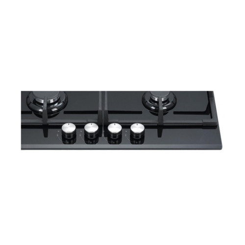 Эта стильная варочная панель оснащена традиционными чугунными решетками и поворотными переключателями. Инновационные характеристики заключаются в функции «газ-контроль» и самом материале панели, сделанной из закаленного стекла. Возможность подключения к балонному газу позволяет использовать прибор и на даче.
