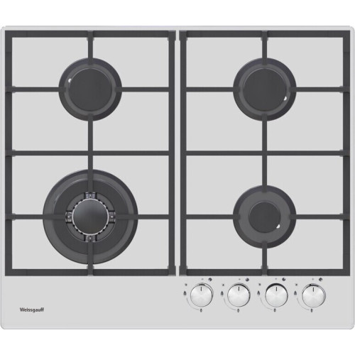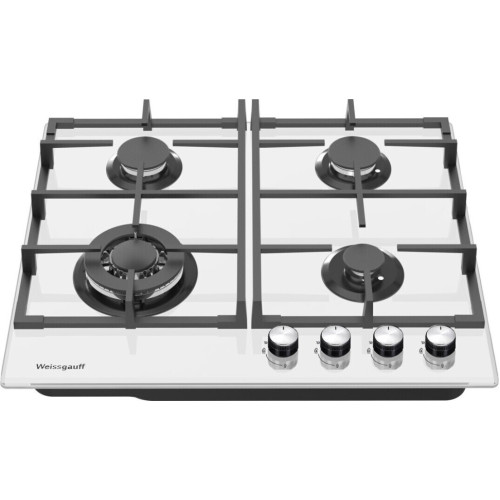 Газовая панель Weissgauff, сочетающая в себе основательность и изящество. Закалённое огнеупорное стекло белого цвета, решётки из высококачественного чугуна, система