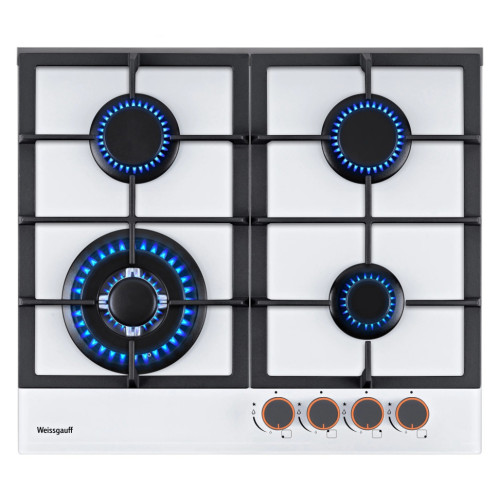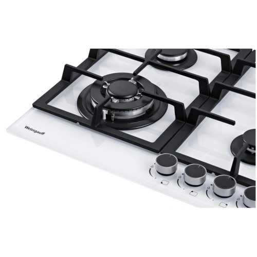 Варочная панель Weissgauff, оснащённая рукоятками с подсветкой и современными решетками из высококачественного чугуна - это поистине современная и функциональная модель Weissgauff, исполненная в белом закалённом стекле LED-подсветка рукояток дополняет технологичный дизайн модели, обозначая приятной красной индикацией ручку когда она находится во включенном состоянии! Решетки из высококачественного чугуна это неизменное качество, надежность и долговечность, воплощенные в каждой детали! Благодаря особому строению цельных решеток Weissgauff, размещение посуды на них становится ещё более удобным и устойчивым! Белое закаленное стекло не только роскошно выглядит, подчеркивая великолепный внешний вид данной модели, но и отлично справляется с механическими воздействиями и температурными перегрузками! WOK-конфорка мощностью 3,4 кВт, которая позволяет осуществить нагрев даже самой крупногабаритной посуды в кратчайший срок! Газ-контроль каждой конфорки обеспечивает наивысшую безопасность: в случае, если пламя погасло, подача газа будет автоматически прекращена! Рукоятки Hi-Tech дополняют современный, по-немецки выверенный облик модели. Более того, конструктивные особенности строения и расположения этих рукояток защищают их от перегрева и деформации при длительном термическом воздействии в процессе приготовления еды! Автоматический электроподжиг, независимо встроенный в каждую из рукояток, позволит зажечь любую конфорку за долю секунды, всего одним нажатием и поворотом руки, не прибегая к дополнительным приспособлениям!