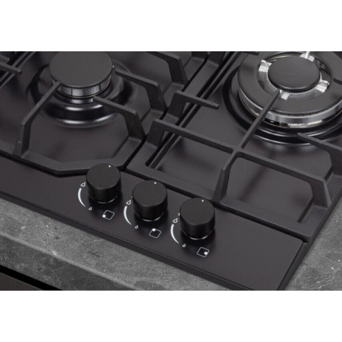 Встраиваемая газовая варочная поверхность Zigmund & Shtain G 22.4 B черного цвета объединяет в себе стильный дизайн и передовые технологии для вашей кухни. • Варочная поверхность выполнена из металла, покрытого специальной матовой эмалью, что придает ей не только эстетичность, но и надежность. Металл устойчив к высоким температурам и механическим повреждениям, обеспечивая долгий срок службы и легкость в уходе. • Чугунные решетки обеспечивают стабильность посуды на плите, равномерно распределяя тепло и выдерживая самые высокие температуры. • Для любителей готовить на высоком огне предусмотрена WOK-горелка с тройным кольцом пламени, которая идеально подходит для быстрого приготовления блюд в азиатском стиле. • Фронтальное управление и поворотные переключатели делают процесс использования интуитивно понятным и максимально удобным. • Каждая ручка оснащена электроподжигом, что избавляет вас от необходимости использовать спички или зажигалки, обеспечивая мгновенное зажигание пламени одним движением. • Система газ-контроля заботится о вашей безопасности, автоматически прекращая подачу газа в случае затухания пламени. В комплекте также предусмотрен переходник для различных типов газа, что делает эту модель универсальной для установки в любых условиях. • Суммарная мощность горелок составляет 6.18 кВт, что обеспечивает быстрый нагрев и эффективное приготовление блюд. ВОК-горелка мощностью 3.4 кВт идеально подходит для интенсивной готовки, а малая горелка с мощностью 0.9 кВт подойдет для турки и разогрева малых порций. • Матовые колпачки горелок не только придают варочной поверхности стильный вид, но и защищают горелки и закаленное стекло от загрязнений и повреждений, обеспечивая долгий срок службы.