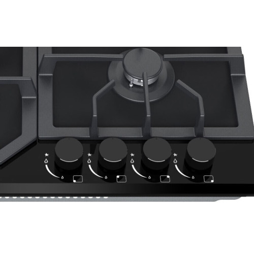 Газовая варочная поверхность Zugel относится к числу функциональной и стильной встраиваемой техники для кухни. Этот кухонный прибор имеет абсолютно гладкую поверхность из закаленного стекла черного цвета и четыре конфорки, каждая из которых прикрыта черной решеткой из чугуна для установки посуды. Конфорки имеют разную мощность горения и позволяют разместить весь спектр кухонной посуды, они снабжены системой газ-контроля для защиты от утечек газа. На панели управления газовой варочной поверхности находятся четыре поворотных переключателя. Они служат не только для управления интенсивностью горения газа в конфорках: в каждом из них размещен механизм активации электроподжига. Он срабатывает при нажатии на регулятор. Варочная поверхность отличается лаконичным и в то же время привлекательным дизайном и может органично вписаться в интерьер любой домашней кухни.