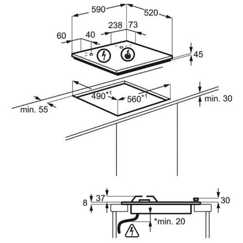 Ширина для встраивания (см) 56