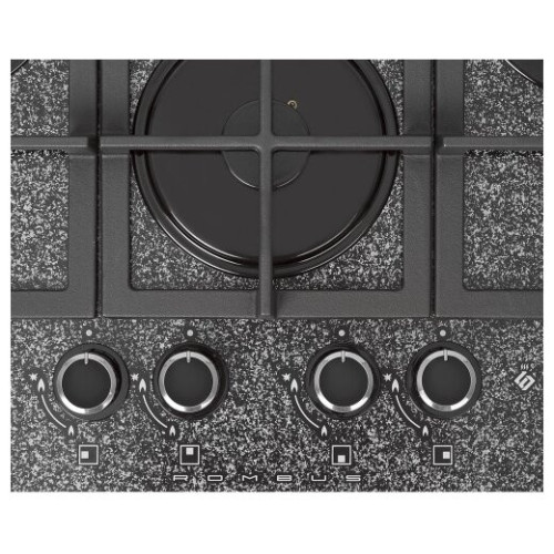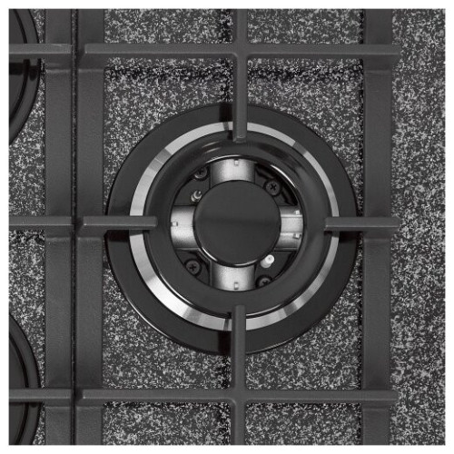 Газовая варочная панель шириной 67 см. Стеклянная рабочая поверхность рассчитана на 4 конфорки, стандартные газовые горелки дополнены конфоркой с двумя контурами пламени, элементы управления декорированы накладками. Три составные чугунные решетки надежно защищают зоны нагрева и спокойно выдерживают вес тяжелой кастрюли. Все газовые горелки оснащены газ-контролем, перекрывающим подачу газа при угасании пламени.