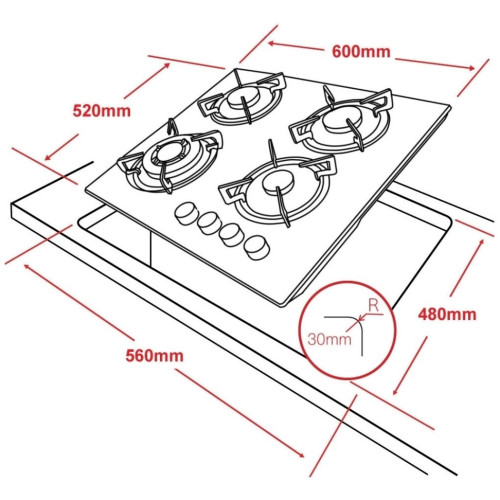 | Общее количество конфорок | 4 |