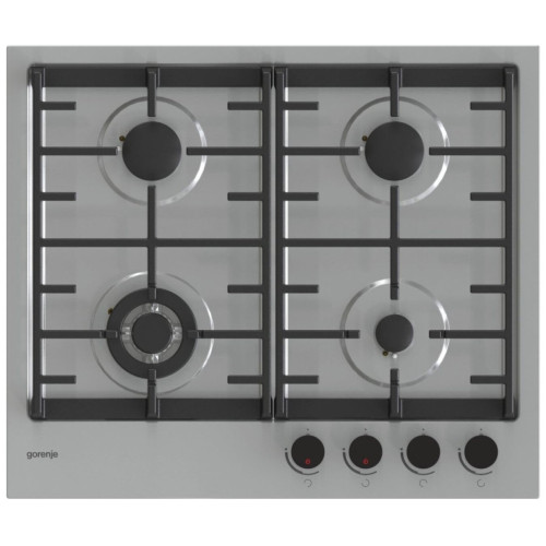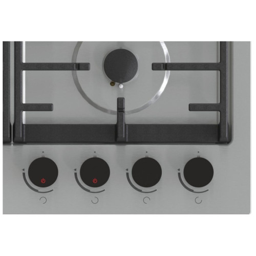 Газовая варочная панель GKT641X. Встроенный в ручку сенсорный газовый таймер SimpleOff на 2-х конфорках. Экономичные и мощные горелки. Трехконтурная конфорка вок. Автоматический электроподжиг варочной поверхности. 4 газовые конфорки: Передняя левая: вок ?; 10.3 см, 3.3 кВт, Передняя правая: малая ?; 4.3 см, 1 кВт, Задняя левая: нормальная ?; 6.7 см, 1.75 кВт, Задняя правая: нормальная ?; 6.7 см, 1.75 кВт Решетки: Чугунные решетки Газ-контроль горелок варочной поверхности. Вид и давление газа: Природный газ G20/20 Габаритные размеры (шхвхг): 60 ? 8.7 ? 51 см Размеры в упаковке (шхвхг): 68 ? 19.5 ? 59 см Монтажные размеры (шхвхг): 56 ? 4.5 ? 48 см Вес нетто: 13.7 кг Вес брутто: 16 кг