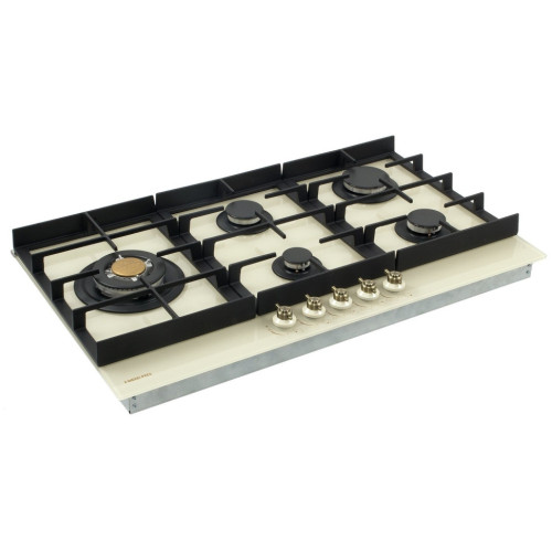 материал панели: закаленное стекло, общее количество конфорок: 5, установка: независимая, электроподжиг: есть, газ-контроль: есть, чугунные решетки: есть, переключатели: поворотные, ШхГ: 87.40х51 см