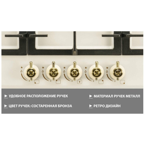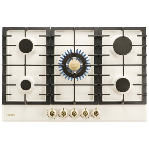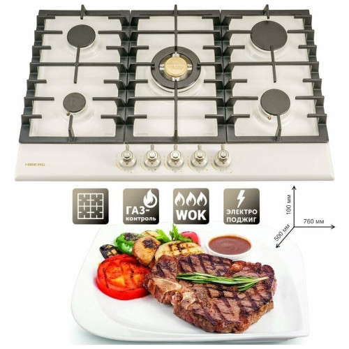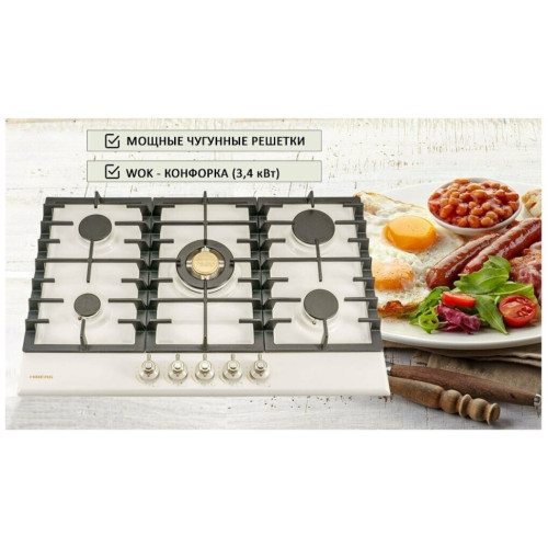 Газовая варочная поверхность HIBERG VS 8154 YR – это изысканное и современное решение для вашей кухни! Модель отлично подойдет для большой семьи и любителей много и вкусно готовить, так как оснащена 5 конфорками и удобна в использовании. Варочная панель выполнена из металла в цвете «бежевая эмаль». Специальное ромбовидное расположение конфорок дает возможность использовать посуду разного диаметра и формы. Посередине рабочей поверхности расположена WOK конфорка. Трехконтурный ряд пламени позволяет ускорить закипание воды и использовать интенсивную скорость прожарки. Основное преимущество HIBERG VS 8154 - функция «электроподжиг», позволяет автоматически включать нужную конфорку с помощью металлических поворотных регуляторов, без использования спичек или зажигалки. За безопасность подачи газа отвечает система «Газ-контроль», которая обезопасит пользователя от вероятности воспламенения при утечке газа. Поверх конфорок на варочной панели установлены массивные и прочные чугунные решетки. Такие держатели из чугуна – привлекательны, эргономичны и очень устойчивы. Особенности и преимущества: - стильное ретро оформление панели в цвете «бежевая эмаль»; - электроподжиг; - газ-контроль; - 5 конфорок; - WOK конфорка; - чугунные решетки; - легкость в уходе. Варочные поверхности от HIBERG - это премиум качество, комфорт эксплуатации и высокая безопасность!