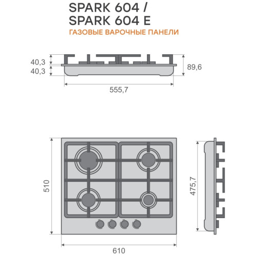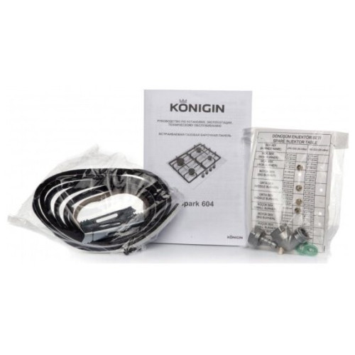 Встраиваемая газовая варочная панель Konigin Spark 604 WH. Характеристики: -Эмалированная сталь -Турецкие горелки REMA, изготовлены на немецком роботизированном оборудовании -Чугунные решетки высокого качества исполнения с накладками для защиты поверхности от царапин -Тяжелые цельнометаллические ручки с отделкой термостойким пластиком -Автоматический электроподжиг -Газ-контроль на всех конфорках -Кабель с евровилкой для подключения к электросети -Цвет поверхности - белый -Ширина поверхности - 60 см -Передняя левая конфорка 2,0 кВт -Задняя левая конфорка 2,9 кВт -Задняя правая конфорка 2,0 кВт -Передняя правая конфорка 1,0 кВт -Номинальная мощность газа 7,90 кВт -Возможность работы от магистрального газа и баллонного газа Комплектация: кабель с евровилкой, монтажный комплект (переходник на баллонный газ, жиклеры для подключения баллонного газа, лента уплотнительная), инструкция, гарантийный талон. Надежная упаковка, гарантирующая безопасность хранения и транспортировки (пенопласт + картонная коробка).
