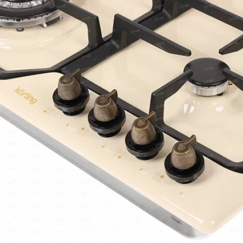 Газ-контроль Даже если пламя погаснет, вам не стоит переживать, ведь во всех моделях Korting установлена система безопасности «Газ-контроль». Данная функция просто остановит подачу газа в случае, если конфорка случайно погаснет. Электроподжиг Вам больше не придется пользоваться спичками и зажигалками. Система «Электроподжиг» от Korting очень удобна и абсолютно безопасна. Просто поверните и нажмите регулятор — конфорка автоматически зажжется. Чугунные держатели для посуды Korting изготавливает держатели для посуды из высококачественных материалов, чтобы вы могли пользоваться ими долгие годы. Держатели из чугуна эргономичны и очень устойчивы. Благодаря этому вам удобно готовить на поверхностях Korting, а риск падения кастрюль и пролива жидкостей сводится к минимуму. Сверхмощная WOK-конфорка Приготовление блюд становится еще более быстрым, а нагрев посуды равномерным. Korting установил в свои модели сверхмощную конфорку с тремя рядами пламени для более быстрого приготовления. Экономьте свое время с Korting. К тому же сверхмощная конфорка WOK поможет вам приготовить изысканные блюда восточной кухни. Расположение WOK-зоны Мощная горелка WOK перемещена по сравнению со стандартным размещением и расположена на передней части поверхности, что исключает нагрев стеновых панелей кухни, такое расположение более удобное для приготовление объёмных блюд. Безопасное управление Поворотные регуляторы находятся вдали от мощной конфорки WOK. Это исключает случайное соприкосновение с горячими поверхностями в процессе приготовления, и регуляторы подвергаются меньшему тепловому воздействию.
