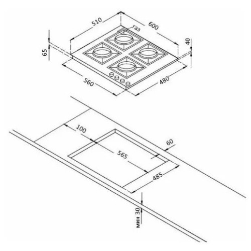 | Глубина для встраивания (см) | 48 |
