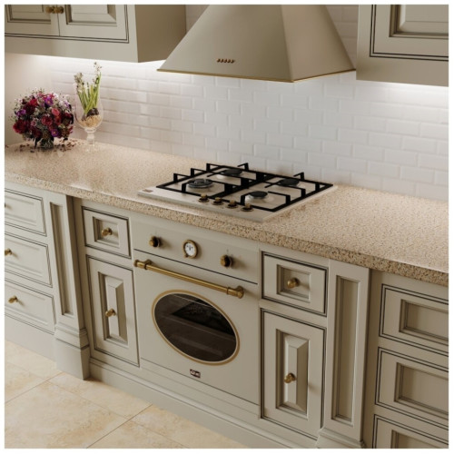 Газ-контроль Даже если пламя погаснет, вам не стоит переживать, ведь во всех моделях Korting установлена система безопасности «Газ-контроль». Данная функция просто остановит подачу газа в случае, если конфорка случайно погаснет. Электроподжиг Вам больше не придется пользоваться спичками и зажигалками. Система «Электроподжиг» от Korting очень удобна и абсолютно безопасна. Просто поверните и нажмите регулятор — конфорка автоматически зажжется. Чугунные держатели для посуды Korting изготавливает держатели для посуды из высококачественных материалов, чтобы вы могли пользоваться ими долгие годы. Держатели из чугуна эргономичны и очень устойчивы. Благодаря этому вам удобно готовить на поверхностях Korting, а риск падения кастрюль и пролива жидкостей сводится к минимуму. Сверхмощная WOK-конфорка Приготовление блюд становится еще более быстрым, а нагрев посуды равномерным. Korting установил в свои модели сверхмощную конфорку с тремя рядами пламени для более быстрого приготовления. Экономьте свое время с Korting. К тому же сверхмощная конфорка WOK поможет вам приготовить изысканные блюда восточной кухни. Расположение WOK-зоны Мощная горелка WOK перемещена по сравнению со стандартным размещением и расположена на передней части поверхности, что исключает нагрев стеновых панелей кухни, такое расположение более удобное для приготовление объёмных блюд. Безопасное управление Поворотные регуляторы находятся вдали от мощной конфорки WOK. Это исключает случайное соприкосновение с горячими поверхностями в процессе приготовления, и регуляторы подвергаются меньшему тепловому воздействию. Металлический шильд Металлический логотип с надписью «KORTING» уникальный благодаря ручной обработке поверхности и придает особенное ощущение внешнему виду варочной панели.