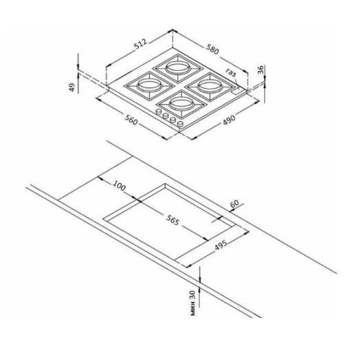 | Глубина для встраивания (см) | 49 |