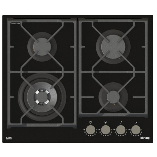 Технология «Flame Control» Регулировка интенсивности пламени стала особо удобной благодаря технологии Flame Control! Регулятор поверхности оснащён девятью положениями интенсивности пламени, благодаря чему Вы всегда можете установить необходимый нагрев с высокой точностью. Газ-контроль Даже если пламя погаснет, вам не стоит переживать, ведь во всех моделях Korting установлена система безопасности «Газ-контроль». Данная функция просто остановит подачу газа в случае, если конфорка случайно погаснет. Электроподжиг Вам больше не придется пользоваться спичками и зажигалками. Система «Электроподжиг» от Korting очень удобна и абсолютно безопасна. Просто поверните и нажмите регулятор – конфорка автоматически зажжется. Чугунные держатели для посуды Korting изготавливает держатели для посуды из высококачественных материалов, чтобы вы могли пользоваться ими долгие годы. Держатели из чугуна эргономичны и очень устойчивы. Благодаря этому вам удобно готовить на поверхностях Korting, а риск падения кастрюль и пролива жидкостей сводится к минимуму. Уникальная конструкция WOK Новая зона WOK имеет три контура нагрева, которые помогают распределять тепло по всему дну посуды, обеспечивая более равномерный прогрев всего дна. Новая конструкция позволяет снизить потребление газа без изменения эффективности. Расположение WOK-зоны Мощная горелка WOK перемещена по сравнению со стандартным размещением и расположена на передней части поверхности, что исключает нагрев стеновых панелей кухни, такое расположение более удобное для приготовление объёмных блюд. Металлические поворотные регуляторы Поворотные регуляторы газовых варочных поверхностей Korting выполнены из металла, что создает профессиональный стиль и препятствует их нагреву. Безопасное управление Поворотные регуляторы находятся вдали от мощной конфорки WOK. Это исключает случайное соприкосновение с горячими поверхностями в процессе приготовления, и регуляторы подвергаются меньшему тепловому воздействию. Стеклянная поверхность Высокая устойчивость к тепловому и химическому воздействию, низкое тепловое расширение, высокая устойчивость к тепловым ударам, способность выдерживать в течение длинных периодов времени температуры до 450°C. Все это позволяет использовать его в течение длительного времени, в самых сложных задачах при приготовлении пищи. Крепление держателей Новое крепление позволяет надежнее фиксировать чугунные держатели, в процессе использования держатели не двигаются в разные стороны, что позволяет безопаснее готовить, без риска опрокинуть или сдвинуть посуду.