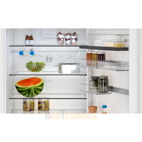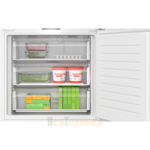 - Полная система No Frost: Забудьте о разморозке! Циркуляция холодного воздуха предотвращает образование инея и льда как в холодильной, так и в морозильной камерах.