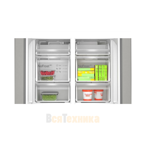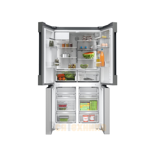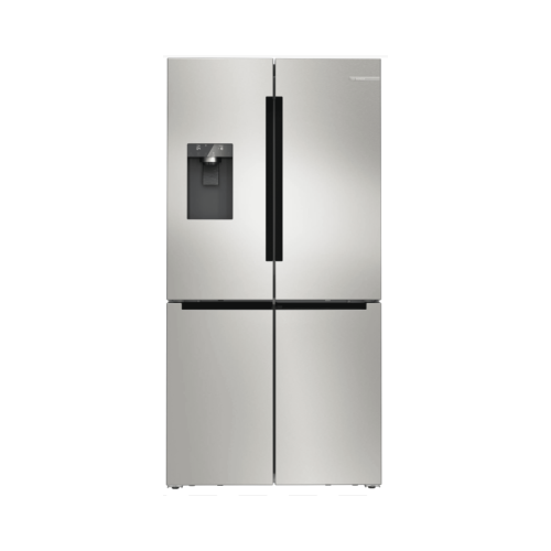 Bosch KFD96APEA — отдельностоящий холодильник формата Side-by-side с четырьмя дверями и тремя камерами. Модель выполнена в серебристом цвете и относится к линейке Serie 6. По своим размерам это крупный холодильник: его ширина составляет 90,5 см, высота — 183 см, глубина — 73,1 см. Общий объем равен 574 литрам, из которых 375 литров отведено под холодильную камеру, а 199 литров — под морозильное отделение. Морозильная камера расположена снизу, а двери открываются вправо и влево.