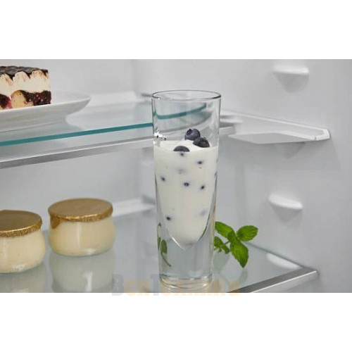 Встраиваемый холодильник Electrolux RNS6TE19S оптимален для установки в шкаф кухонного гарнитура. Это способствует комфортному использованию. В основной камере есть полки, высоту которых можно регулировать. Благодаря этому удобно хранить продукты питания и готовые блюда в больших кастрюлях и контейнерах. Дверца дополнена пластиковыми лотками для бутылей с напитками, соусами, упаковок с йогуртами. В выдвижном ящике овощи, фрукты и зелень длительное время не теряют свежести. Морозильное отделение оборудовано большими контейнерами, что оптимально для хранения заготовок с полуфабрикатами, овощными заготовками, крупных кусков мяса и птицы целиком. Система NoFrost позволяет избежать образования наледи на стенках камер, что упрощает уход за устройством. Данная модель оснащена сенсорным дисплеем, который способствует удобному и точному подбору параметров. LED-лампа равномерно освещает пространство камеры.