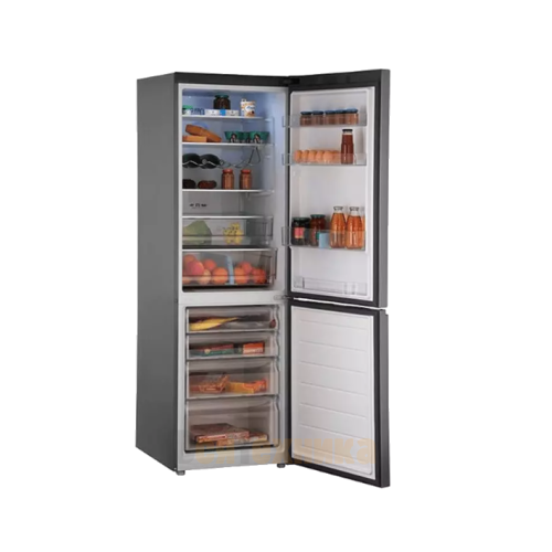 Кроме традиционных полок и «карманов» на дверце, в верхнем отделении есть зона свежести. Это контейнер, в котором поддерживается оптимальный уровень влажности для хранения овощей, фруктов и зелени. Есть подвес для горизонтального размещения бутылок, это позволит сэкономить место. В морозильном отделении – четыре ящика, что даст возможность рассортировать продукты по типам. В случае отключения электроэнергии ваши припасы будут защищены от оттаивания в течение суток.