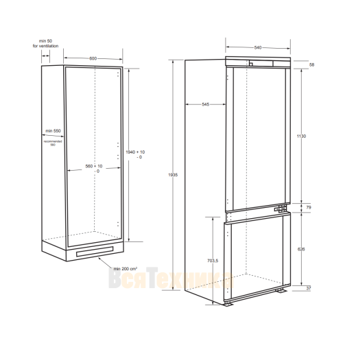 | Размер ниши для встраивания (ВхШхГ) (см) | 194 x 56 x 56 |