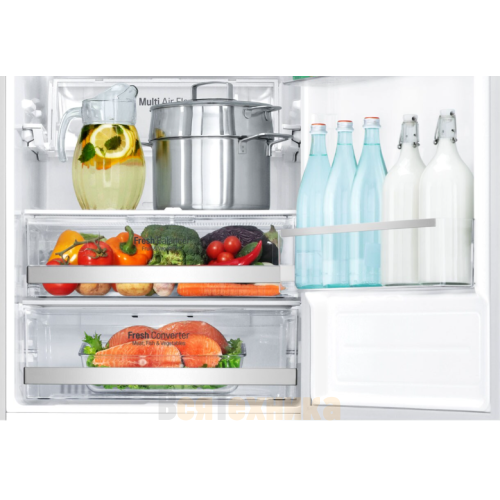 - Мульти-поток Multi-Air Flow: Система равномерно распределяет охлажденный воздух по всем уголкам холодильной камеры через множество специальных отверстий. Это гарантирует, что разница температуры между верхней и нижней полкой минимальна, а ваши продукты сохраняют свежесть одинаково хорошо на любом уровне.
