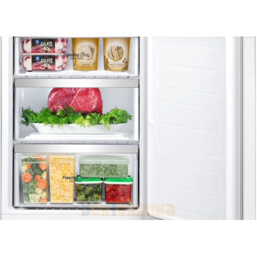 - Мощная и вместительная морозильная камера: Морозилка объемом 92 литра с системой No Frost быстро и равномерно замораживает продукты, сохраняя их вкус и питательные свойства. Выдвижные ящики обеспечивают удобный доступ.