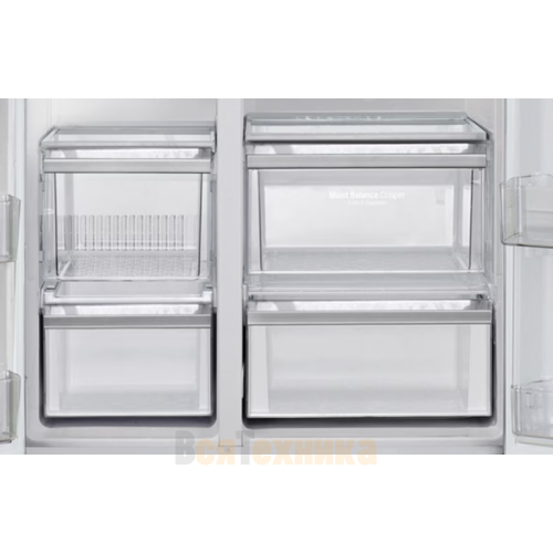 - Максимальный комфорт и организация: Продуманное внутреннее пространство, включая зону свежести и удобные ящики, позволяет идеально систематизировать продукты.
