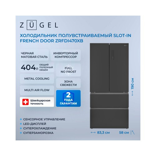 Холодильник полувстраиваемый ZUGEL ZRSSI540XB