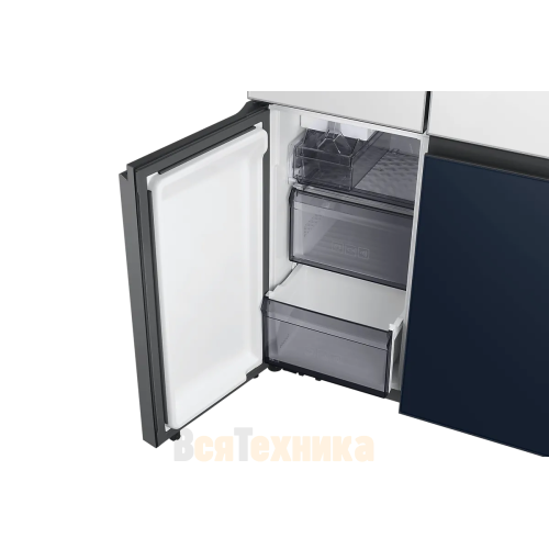 - Беспрерывный дизайн: Панели холодильника можно комбинировать с другими устройствами линейки Bespoke (духовые шкафы, посудомоечные машины) для создания гармоничного ансамбля.
